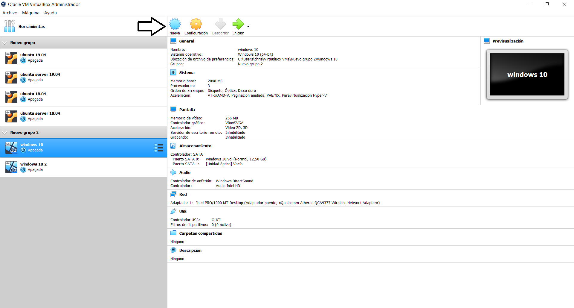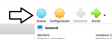 Cuando tengamos instalado virtualbox lo abrimos y le damos al botón Nueva.