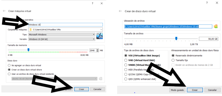 Se nos abrira otra ventana, donde tendremos que poner el nombre del sistema operativo en nuestro caso sera Windows 10, y en el tamaño de memoria lo dejamos como estaba que es lo recomendado, le damos a crear y nos saldrá otra ventana donde pondremos tamaño de la memoria de nuestra maquina virtual.